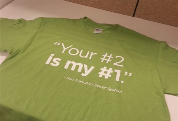 The goal of any marketing campaign is to get noticed; even better, to get talked about. That can be especially difficult these days, with so much media and stimuli vying for our attention. To escape the “white noise” category, your message needs to stand out. It may take a level of courage — you can certainly crash and burn by being too controversial, for instance — but creative, out-of-the-box thinking can truly generate buzz. The San Francisco Public Utilities Commission (SFPUC) has hit the mark by using some innocent and genuinely funny potty (what else?) humor to bring awareness and public support to wastewater issues. Their signs, which appear on buses, trains, and even t-shirts, are routinely photographed by everyday citizens (taking “selfies”), and then popping up on social media. See for yourself: