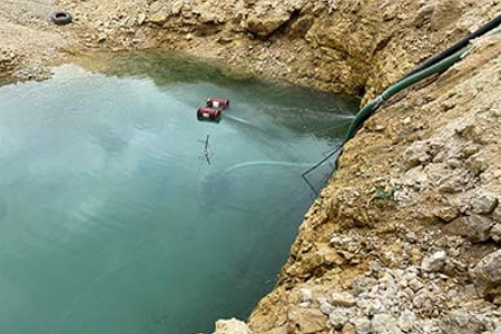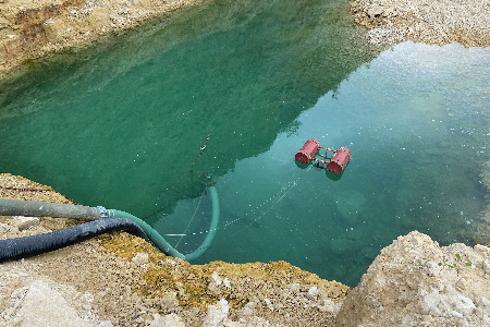 Tsurumi's GSZ pump can be seen submerged (left), attached to a discharge hose.