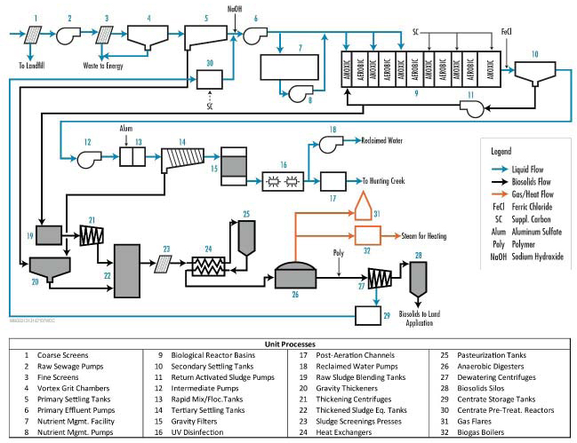 Figure 2. AlexRenew WRRF process flow diagram with sidestream anammox