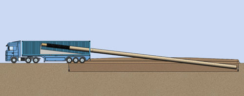 "Imagine having a truck with a mandrel in the back," Ehsani said. "You start making the pipe on, say, a 20-foot mandrel, and pull off 18 feet so you have two feet left on the mandrel," he said. "Then you just move the truck forward and drop the pipe in the ground, and keep adding pipe."