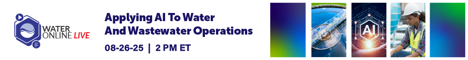 | Join Water Online Live on August 26th at 2pm ET for a virtual panel discussion as we explore the evolution of AI in the water space, the benefits for operations, and tips for implementation. Registration is free for this digital event. |