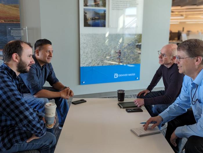 IT staff (from left) Justin Reich, IT infrastructure technician; Pravish Kattel, IT enterprise architect; Brandon Scott, IT manager; and Keith Oligney, director of IT infrastructure, enjoy working collaboratively to solve IT challenges and try new, innovative solutions. Photo credit: Denver Water.