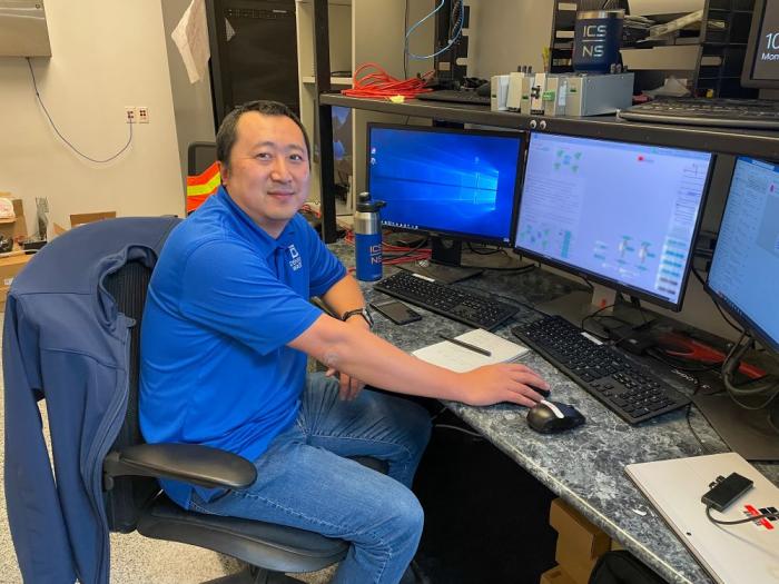 Yixin Shi, industrial control senior engineer, works on the SCADA programming console at Marston Treatment Plant. Photo credit: Denver Water.