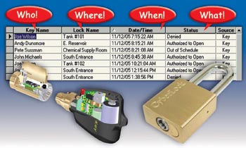 Each time the CyberKey opens a padlock, a record of the user ID, date, and time is stored in both the lock and the key. A key can be set to automatically expire within minutes, hours, days, months, even shift-by-shift, depending on the specific task that has been assigned to the user.
