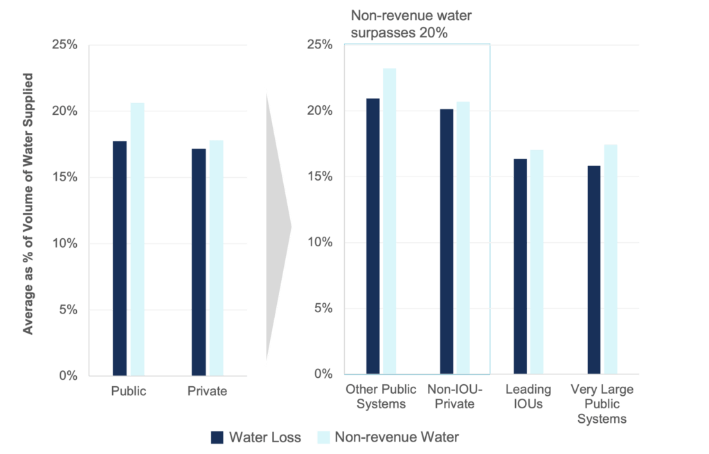 On average, small and very small utilities report water losses above 20.0% of total supply, according to Bluefield. “With limited financial resources, technical expertise, and staffing, smaller utility systems face steep challenges in leak detection, asset management, and system upgrades,” says Bondar. In contrast, larger utilities report average losses of 16.7%, underscoring the advantages of scale and access to more advanced monitoring technologies. This disparity highlights the need for targeted investment and tailored solutions for under-resourced communities facing aging infrastructure and capital limitations.