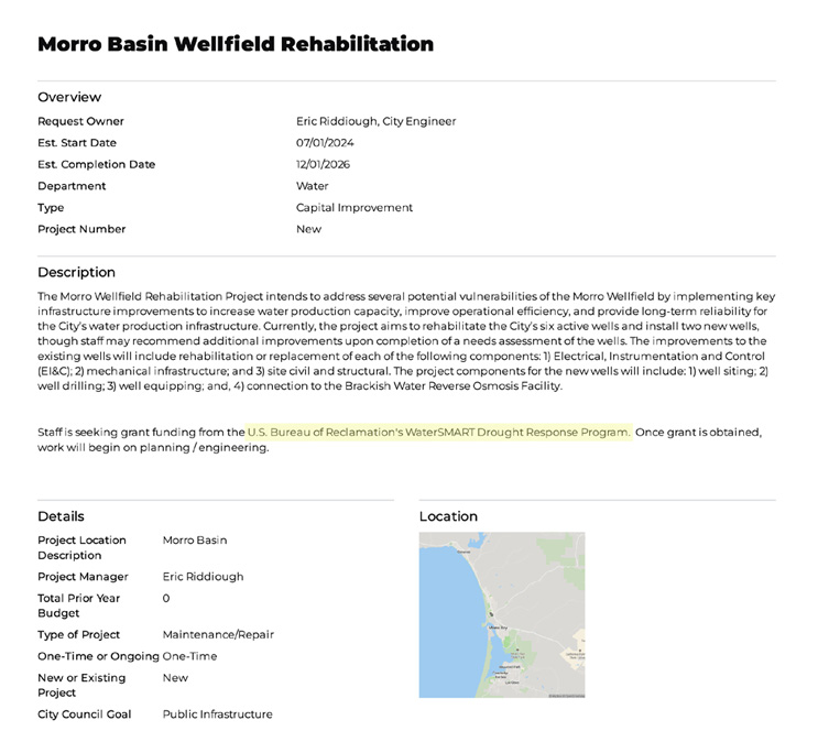 Communities are also rising to the challenge of spending available federal and state funds on smart solutions. In the example above, a California city is seeking WaterSMART funding for improved operational efficiency at a wellfield.
